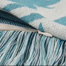 Enhance your living space with the Bohemian Selva Pattern Cushion Cover. This 24″ x 24″ cozy pillow cover is crafted from 100% soft cotton, providing the perfect balance of style and comfort. With a bold, scenic pattern in vibrant hues of blue and yellow, this pillow cover instantly adds a touch of nature-inspired elegance to any room. The cushion cover features intricate jacquard knitting and embroidered detailing, making it an eye-catching piece that brings personality and warmth to your home decor.