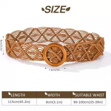 Wear it with flowy dresses, high-waisted skirts, or even as a stylish accent to your favorite pair of jeans. The belt’s wide design ensures a comfortable fit, and the rustic charm of the wooden buckle will make you feel connected to nature wherever you go.