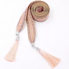 Looking to elevate your wardrobe with a touch of bohemian flair? This Boho Ethnic Chic Tassel Chain Waist Belt & Headwear in a gorgeous vintage pink is the perfect accessory to add a casual, yet stylish accent to your look. Whether you’re cinching it around your waist for an hourglass silhouette or wrapping it around your head for a festival-ready vibe, this versatile sash adds instant character to any outfit. Made with a blend of durable canvas, polyester, and plastic, it’s a lightweight, comfortable, and fashionable piece that you’ll reach for again and again.