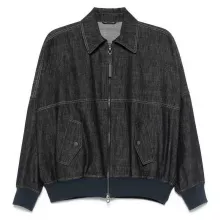 The Brunello Cucinelli denim jacket features all the classic elements you love, elevated with modern tailoring. The traditional collar and front zipper closure give it a polished edge, while the ribbed cuffs and hem create a subtle contrast in texture and a snug, flattering fit. Side flap pockets with button closures add both function and flair, while wide sleeves offer ease of movement without sacrificing structure. Designed with a regular fit, this piece layers comfortably over your favorite tees, shirts, or lightweight sweaters.