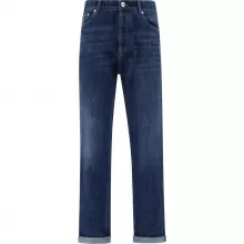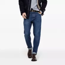 Crafted from premium cotton, these jeans are soft yet structured, offering all-day comfort without compromising on style. A refined front button closure brings a distinctive twist to a classic design, and the five-pocket layout adds practicality with a familiar, easy-going look. The turn-up hem adds a subtle sartorial edge, making these jeans just as appropriate for relaxed office settings as they are for weekend outings.