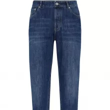 What truly sets these jeans apart is the exquisite detailing. A signature leather patch, pressure-printed with Brunello Cucinelli’s iconic branding, is discreetly placed at the back waistband — a subtle nod to luxury that won’t go unnoticed. Belt loops give you the freedom to personalize your fit, while the soft cotton fabric ensures comfort whether you’re heading to brunch or a casual dinner date.
