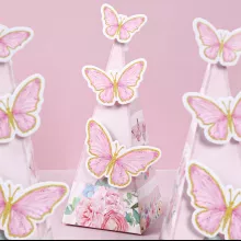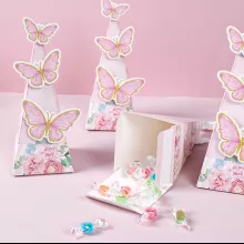 Transform your special occasions into enchanting events with our Butterfly Candy Gift Box with Stickers. Designed with a charming butterfly theme, this delightful gift box is perfect for adding a touch of elegance and whimsy to weddings, birthday parties, baby showers, anniversaries, and more. Made from high-quality paper, each box combines beauty and practicality, creating a unique way to present candies or small favors to your guests.