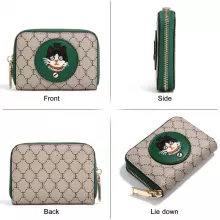 This wallet is designed for those who appreciate both functionality and aesthetics. The main material is genuine leather, ensuring that this purse is both durable and soft to the touch. The wallet features a zipper closure that keeps your cash and cards safe and secure. Inside, you’ll find a convenient card holder, allowing you to organize your cards with ease. The wallet’s short size (approximately 4 to 6 inches in length) makes it compact and easy to carry while still providing enough space for your essentials. The elegant cartoon cat design on the front makes it stand out from typical wallets, offering a unique and charming look.