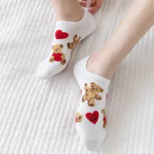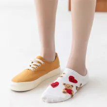 Add a playful twist to your wardrobe with these Cartoon Women’s Invisible Socks. Featuring a charming bear and red love heart pattern, these breathable cotton socks are perfect for casual outings, lounging at home, or as a thoughtful gift for someone special. The low-cut design makes them ideal for pairing with sneakers, loafers, or flats, while their soft, sweat-absorbing material ensures all-day comfort.