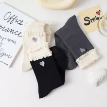 Bring a touch of elegance to your everyday wardrobe with these chic and adorable Double-Layer Lace Embroidery Love Socks. Perfectly blending preppy style with feminine charm, these socks are designed for girls who love to stand out. Crafted with premium cotton and featuring delicate bubble lace embroidery, they offer unmatched comfort and style for spring and autumn seasons.
