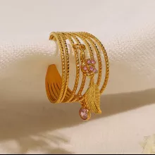 The pink crystal in the center radiates a soft, feminine charm, while the 18K gold plating gives it an opulent, luxurious feel. Ideal for gifting to a loved one – be it your mom, sister, friend, or someone special – this ring is sure to leave a lasting impression.