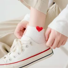 Add a touch of fun and personality to your wardrobe with these chic and adorable 3D Red Love Heart Ankle Socks. Designed for women and girls who love to express their playful side, these socks feature a charming 3D red heart detail that makes them stand out from ordinary socks. Perfect for casual outings, campus wear, or just adding a cheerful vibe to your everyday look, these ankle socks are a must-have accessory for all seasons.
