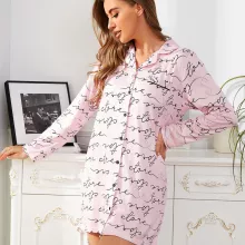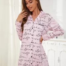 Transform your nightly routine with this chic and comfortable women’s letter print nightgown. Designed for style and practicality, this long-sleeve, button-up sleepwear combines a classic notched collar with a modern, relaxed fit. Whether you’re unwinding at home or enjoying a cozy night in, this nightgown ensures you feel as good as you look.