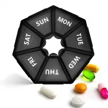 - Seven-Sided Design – This unique, seven-sided layout allows you to organize medications or supplements for each day of the week, helping to simplify your routine and ensure you stay on track.