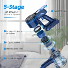 This vacuum cleaner stands out due to its combination of powerful suction, long-lasting battery, and smart filtration. The 5-stage double-cyclone filtration ensures cleaner air while you vacuum, making it ideal for those with allergies. Its large-capacity battery ensures long run times, and the ability to adjust suction power makes it suitable for all types of messes. The flexible brush with LED lights ensures that no dirt or dust is left behind, even in hard-to-reach areas.
