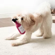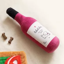 Bring a touch of whimsy to your pet’s toy collection with this adorable wine bottle-shaped squeaky dog toy. Perfect for both fun and photo-worthy moments, this plush toy is designed to keep your furry friend entertained for hours. Its unique design mimics a wine bottle, making it not only a playful accessory for your pup but also a charming prop for pet photography or special occasions. Crafted from soft plush material, it’s gentle on your dog’s mouth and durable enough for endless play sessions.