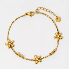 Enhance your jewelry collection with this exquisite Dainty 16K Gold Plated Stainless Steel Beads and Cubic Zirconia Bracelet. Designed for the modern woman, this bracelet effortlessly combines style and sophistication. Made from high-quality stainless steel and plated with 16K gold using PVD technology, it exudes a luxurious shine that lasts. The addition of shimmering cubic zirconia stones and delicate flower-shaped accents adds a touch of feminine charm to any outfit.