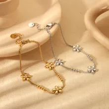 - Design: Dainty beaded chain with floral accents and cubic zirconia stones.