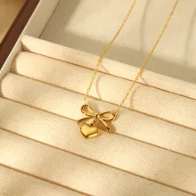 Elevate your style with this Dainty 18K Gold Plated Stainless Steel Necklace. Featuring a charming bow heart pendant, this trendy accessory is designed to add a touch of elegance to any outfit. Whether you’re heading to a party or looking for an everyday statement piece, this necklace is the perfect blend of sophistication and modern fashion.