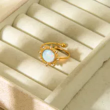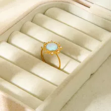 Elevate your accessory game with this eye-catching and reliable piece. The Dainty Adjustable Sun Faux Opal Ring is the ideal way to express your unique style and love for celestial-inspired jewelry. Its elegant design, combined with robust features, makes it a standout piece you’ll treasure for years to come.