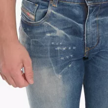 What sets these jeans apart is the attention to detail in every stitch. The button and zipper closure ensure a secure fit, while the five-pocket design provides all the storage you need. The waistband loops are perfect for adding a belt, and the iconic Diesel logo embroidered on the back adds a subtle yet bold touch to your look.