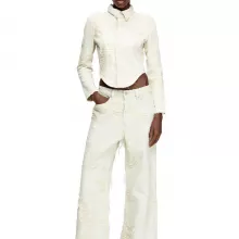 This shirt’s standout feature is its jacquard weave, crafted on a double loom to mimic Diesel’s iconic distressed aesthetic. The result? A design rich in visual depth, blending raw texture with refined detail. A rounded hem softens the structure for a laid-back, feminine edge, while the invisible snap-front keeps things minimal and clean. The premium cotton denim offers breathable comfort and long-lasting wear, giving you freedom to style it tucked in or left loose.
