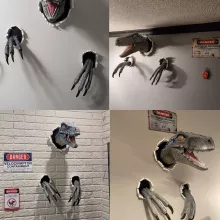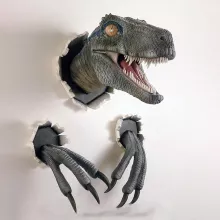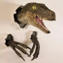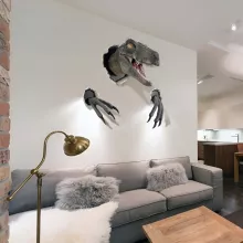 With its meticulously molded details and hand-painted finish, this wall-mounted dinosaur head brings the raw power of the prehistoric world into your home. Its dynamic design makes it look as though the dinosaur is bursting right through your wall, adding a dramatic flair and making it a perfect conversation starter. Crafted to last, this high-quality sculpture resists fading and ensures years of enjoyment, making it both a decorative and durable addition to your space.