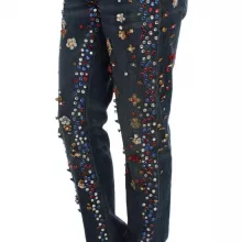 What sets the Dolce & Gabbana Enchanted Sicily Boyfriend Fit Jeans apart is their unique combination of craftsmanship and design. The exclusive Enchanted Sicily Collection features stunning embellishments—crystal hearts and roses—that make these jeans a true work of art. The light blue wash gives them a timeless look, while the gold and silver detailing adds just the right amount of luxury to make these jeans stand out in any crowd. They are not just jeans; they are a bold fashion statement.