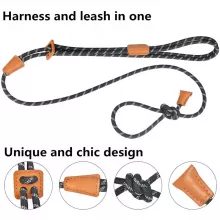 Simplify your dog walking routine with this all-in-one slip harness and leash set. Designed for convenience and control, this set combines a durable, adjustable harness and a 5-foot leash into a single piece, so you don’t have to fumble with separate attachments. Crafted from wear-resistant nylon with reflective threading, it provides both strength and safety, making it the perfect choice for daytime or nighttime walks. The lightweight design is comfortable for dogs of all sizes, ensuring a snug and secure fit while offering your pet the freedom they need to explore.