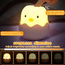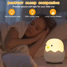 - Touch-Activated Control: Simply tap the adorable chick to adjust the light’s brightness – perfect for little hands.