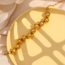 Indulge in sophistication and charm with this stunning 18k gold-plated stainless steel bracelet. Featuring classic round beads and a flawless chain design, this bracelet is the perfect blend of elegance and durability. Whether you’re dressing up for a special occasion or adding a touch of class to your everyday outfit, this versatile accessory is your go-to choice.