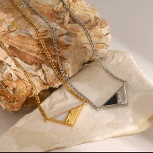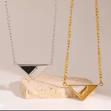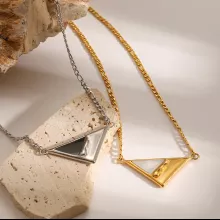 Turn heads wherever you go with this stunning Triangle Pendant Necklace. A symbol of modern sophistication and minimalist beauty, this piece is designed for women who love to make a statement. Its unique triangle design is a perfect blend of bold and delicate, making it an essential accessory for parties, casual outings, or special occasions. Crafted with 18K PVD gold plating over stainless steel, this necklace is as durable as it is dazzling, ensuring you look fabulous for years to come.
