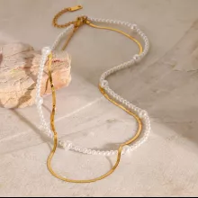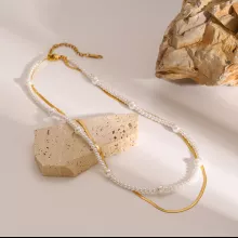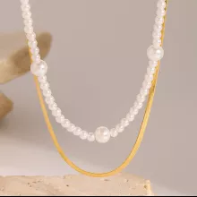Elevate your style effortlessly with this elegant gold-plated double-layer necklace featuring a stainless steel chain and a delicate glass pearl centerpiece. Designed for modern women who cherish sophistication, this necklace is a perfect blend of trendiness and timeless elegance. Whether you’re dressing up for a party or adding a subtle touch of glamour to your everyday look, this necklace has you covered.