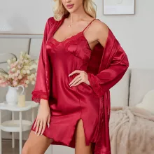 Turn every evening into a celebration of elegance and sensuality with our Elegant Lace Satin Wedding Nightgown & Robe Set. Whether for a bride, bridesmaid, or a special self-care treat, this set promises to add a touch of glamour to your wardrobe.