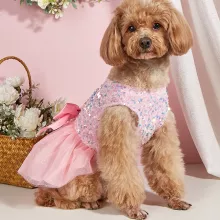 Order now and let your pet step into the spotlight with the Elegant Sequin Bowknot Dog Princess Dress with Tulle Skirt. Transform ordinary days into extraordinary moments!