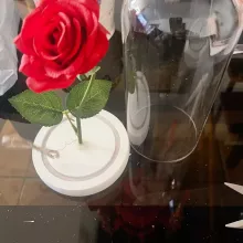 I was pleasantly surprised by how dreamy it is! Initially, I wasn't expecting to like it as much as I do, but I absolutely love it. The quality is impressive for the price. Even though the rose is made of plastic, it doesn't look cheap at all. I'm definitely planning to buy another one as a gift because it's just so beautiful.