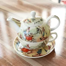 Indulge in the charm of traditional European tea time with this European Afternoon Tea Set, crafted from high-quality British bone china. Featuring a whimsical yet refined design, this single-cup teapot, cup, and saucer set brings elegance and joy to your daily tea ritual. The set is adorned with delightful overglazed cartoon details, adding a playful touch to the timeless sophistication of fine bone china. Perfect for an afternoon tea party or simply savoring a quiet moment, this tea set makes each sip a special occasion.