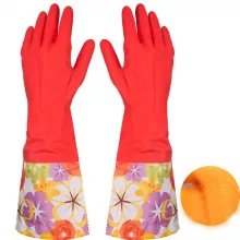 Keep your hands dry and protected with our Extra Long Waterproof Dishwashing Gloves, designed to make household cleaning tasks easier and more comfortable. These gloves are crafted with a robust blend of rubber, PVC sleeve, and soft lining, offering a superior grip and exceptional waterproof protection. With a total length of 16 inches, these gloves provide coverage past the wrist, ensuring your hands stay safe from splashes, dust, and grime.