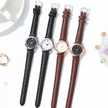 Crafted from high-quality alloy and leather, this watch offers durability and long-lasting wear. The small 25mm dial size ensures a delicate and feminine look, while the simple numberless design keeps things elegant and understated. Powered by a reliable quartz movement, this watch offers accurate timekeeping that you can count on every day. The buckle clasp ensures a secure fit, and the leather band adds both comfort and style to your wrist.