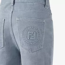 One of the standout features of these jeans is the iconic Fendi embossed monogram on the back pocket. This luxurious touch adds a distinctive flair, making these jeans more than just a basic item – they’re a statement piece. Whether you pair them with a simple t-shirt for a laid-back look or dress them up with a tailored blouse, these jeans are the perfect addition to any wardrobe.