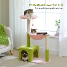 Flower Cat Tree Tower with Hammock, Sisal Scratching Posts & Cozy Condo