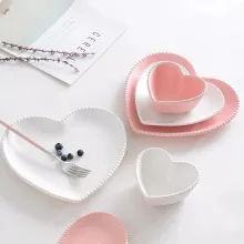 - Elegant Design: Heart-shaped plates and bowls with a frosted ceramic finish for a modern and romantic look.