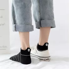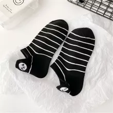 Crafted with a soft blend of cotton, polyester, and spandex, these socks are not only comfortable and breathable, but they also provide a snug and cozy fit. The lightweight material ensures that your feet stay fresh and happy throughout the day, while the anti-friction properties protect you from blisters. The white and black striped pattern paired with the panda design gives them a charming, artsy vibe that’s both playful and stylish.