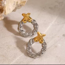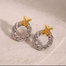 What sets these earrings apart is their impeccable combination of style, quality, and practicality. The 18K PVD gold plating ensures they maintain their brilliance, while the stainless steel core guarantees lasting strength. Their unique twist cross design adds an eye-catching element that effortlessly elevates any ensemble.