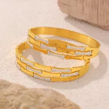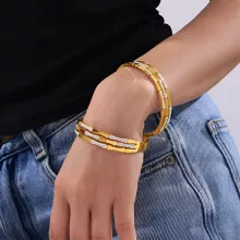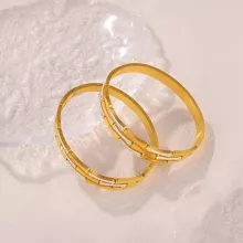 Add a touch of elegance to your accessory collection with the Gold-Plated Bamboo Rhinestone Bangle. Crafted from premium stainless steel, this exquisite bracelet features a unique bamboo joint design inlaid with shimmering rhinestones. The gold-plated finish enhances its luxurious appeal, while its waterproof construction ensures lasting durability and brilliance. This is the perfect accessory for women who love classic style with a modern twist.