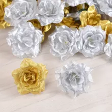 Whether you’re designing for a special occasion or simply enhancing your home décor, these gold and silver silk rose heads will add sophistication and beauty to any project. With their realistic design and versatile use, they are an essential addition to your craft and decoration supplies.