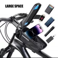 The Hard Shell EVA construction ensures your items stay protected, even on bumpy roads. The tough, shock-resistant outer shell safeguards your belongings from impact, while the rainproof polyester material keeps water out. The bag is compact yet spacious enough to fit a mobile phone, repair tools, and small essentials. Its position on the handlebar or top tube makes it easy to reach for your phone or map without stopping your ride. Ideal for both long-distance cycling and short daily commutes, this bag will keep you riding smoothly, even in unpredictable conditions.