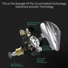 - 12-Driver Hybrid Technology: Dynamic and balanced armature drivers deliver deep bass, clear treble, and enhanced soundstage.