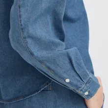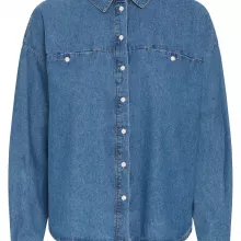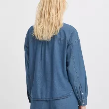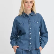 Ichi Women’s Light Blue Button-Down Shirt with Classic Collar and Front Pockets