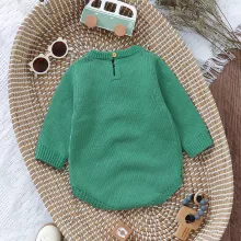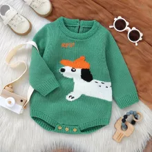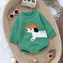 Dress your little one in warmth and style with this charming knit bodysuit, perfect for the autumn season and beyond. Featuring a cute cartoon dog pattern, this long sleeve romper brings both comfort and cuteness to your baby’s everyday wear. Made from soft, high-quality acrylic, this bodysuit provides the cozy warmth ideal for cool days, while the breathable fabric keeps your baby comfortable throughout the day. Its unisex design and beautiful green color make it a versatile piece suitable for both boys and girls.