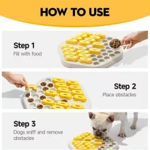 This innovative puzzle feeder features 57 holes and 18 removable obstacles, allowing you to hide treats in various locations. Your pet will have to work to uncover their food by pawing or nosing away the barriers. Perfect for pets of all puzzle experience levels, this toy is designed to challenge your pet’s mind and keep them engaged as they figure out how to access their reward.
