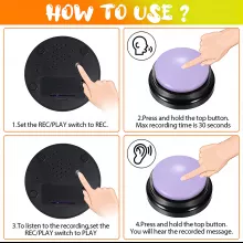 - Recordable Buttons: Each button records up to 30 seconds of sound, making it easy to create unique messages and commands.
