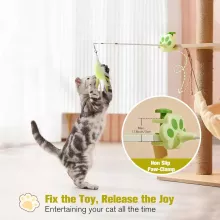 - Easy to Attach: Mounts securely to tables, doors, or cat towers with a thickness of up to 1.1 inches for hands-free play.