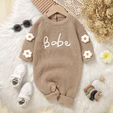 Whether you’re preparing for a family outing or just want a cozy outfit for your baby to lounge in, this romper delivers style and comfort. The knitted acrylic material provides warmth, while the full-length sleeves ensure coverage on cooler days. The standout 3D flowers make this romper picture-perfect, ideal for memorable moments, from family photos to first outings. The solid color with floral accents adds a touch of elegance that suits both boys and girls, making it a versatile addition to any wardrobe.